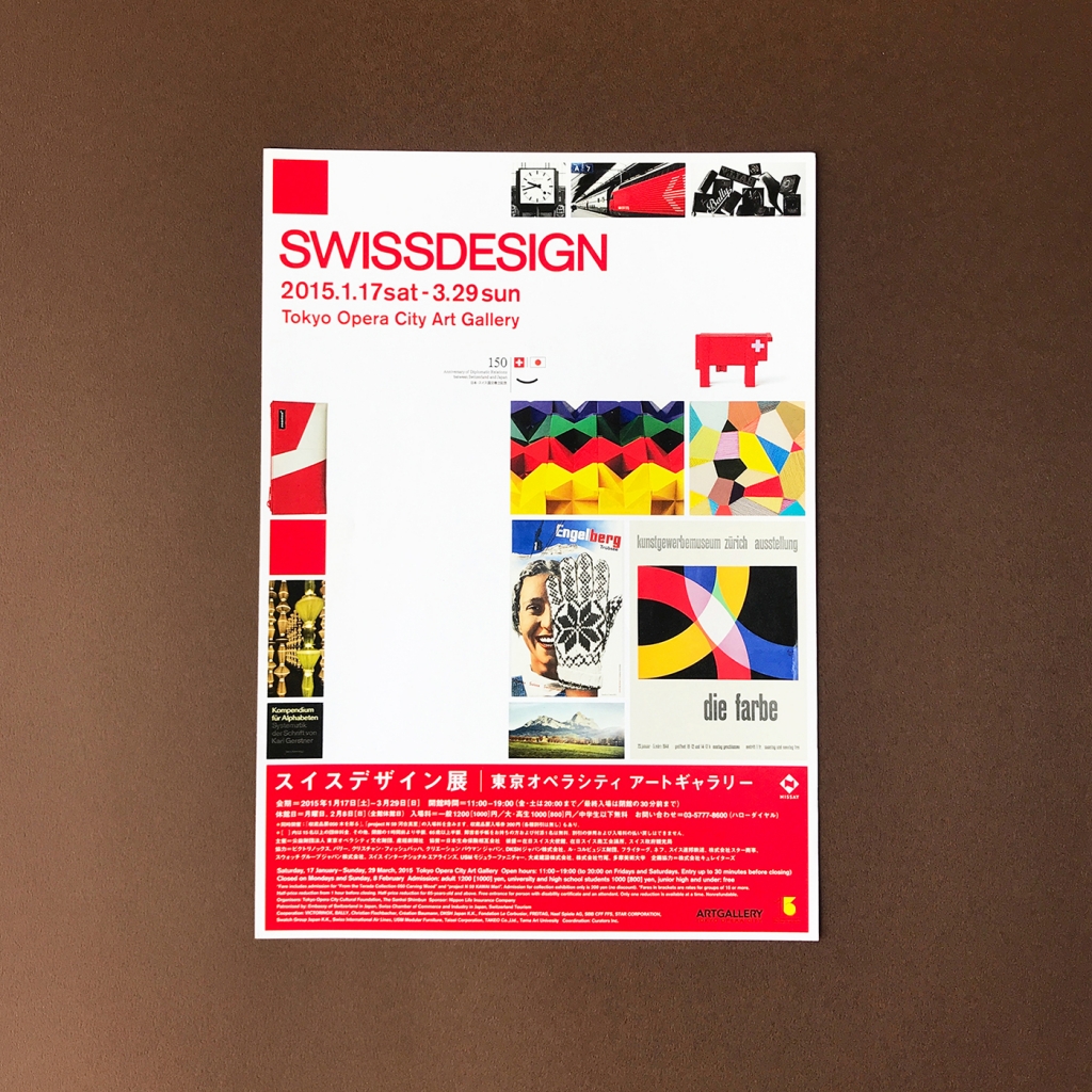 鮮やかな赤色が引き立つスイス国旗をモチーフにしたスタイリッシュデザイン!スイスデザイン展フライヤー
